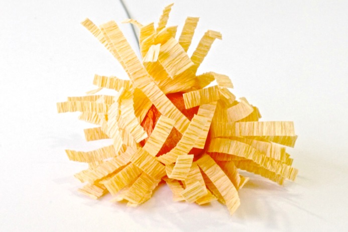 How to Make DIY Fall Paper Flower Pumpkin Decor on Dear Handmade LifeStep 6: Wrap the fringe around the bead and use hot glue to secure in place.