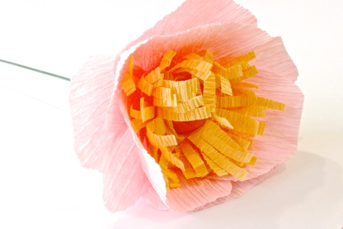 How to Make DIY Fall Paper Flower Pumpkin Decor on Dear Handmade LifeStep 5: Start shaping your flower petals by gently creating a bowl-shape in the center. Crepe paper is a lovely material to work with because it shapes pretty easily!