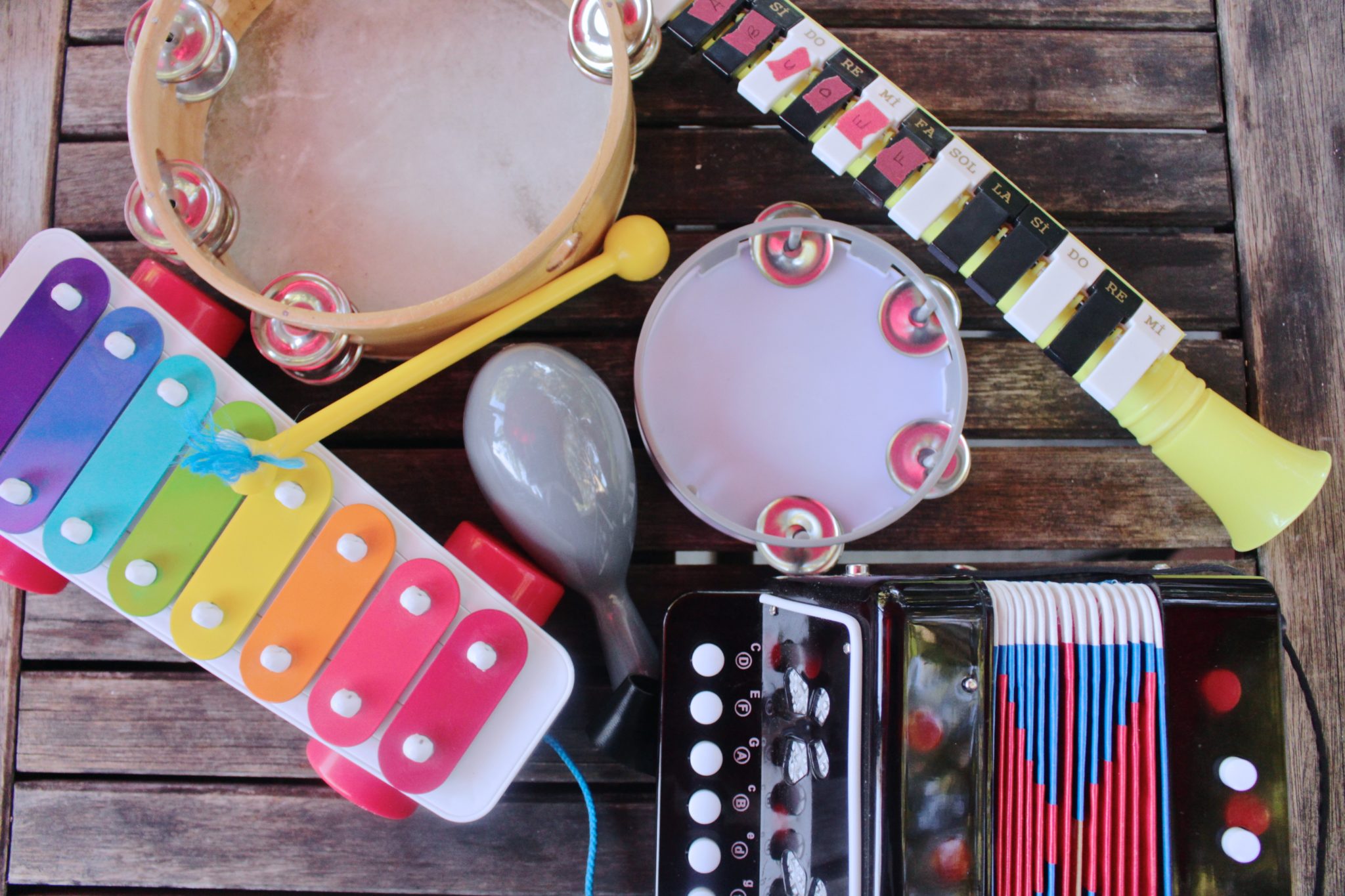 -Random musical instruments like tambourines, maracas, harmonicas or toy instruments (this pack is inexpensive and has a bunch of different kid’s instruments)