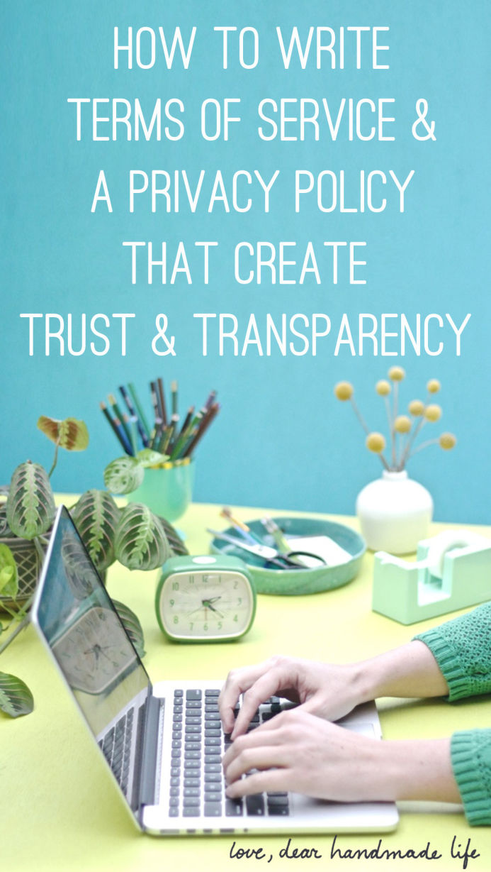 Now these documents come with scary legal names: privacy policy and terms of service. But just because they have legal names, doesn’t mean they have to be stuffed with legalese. You can write these documents in a way that’s true to your voice and your brand. Don’t believe me? Here is my privacy policy and terms of service.