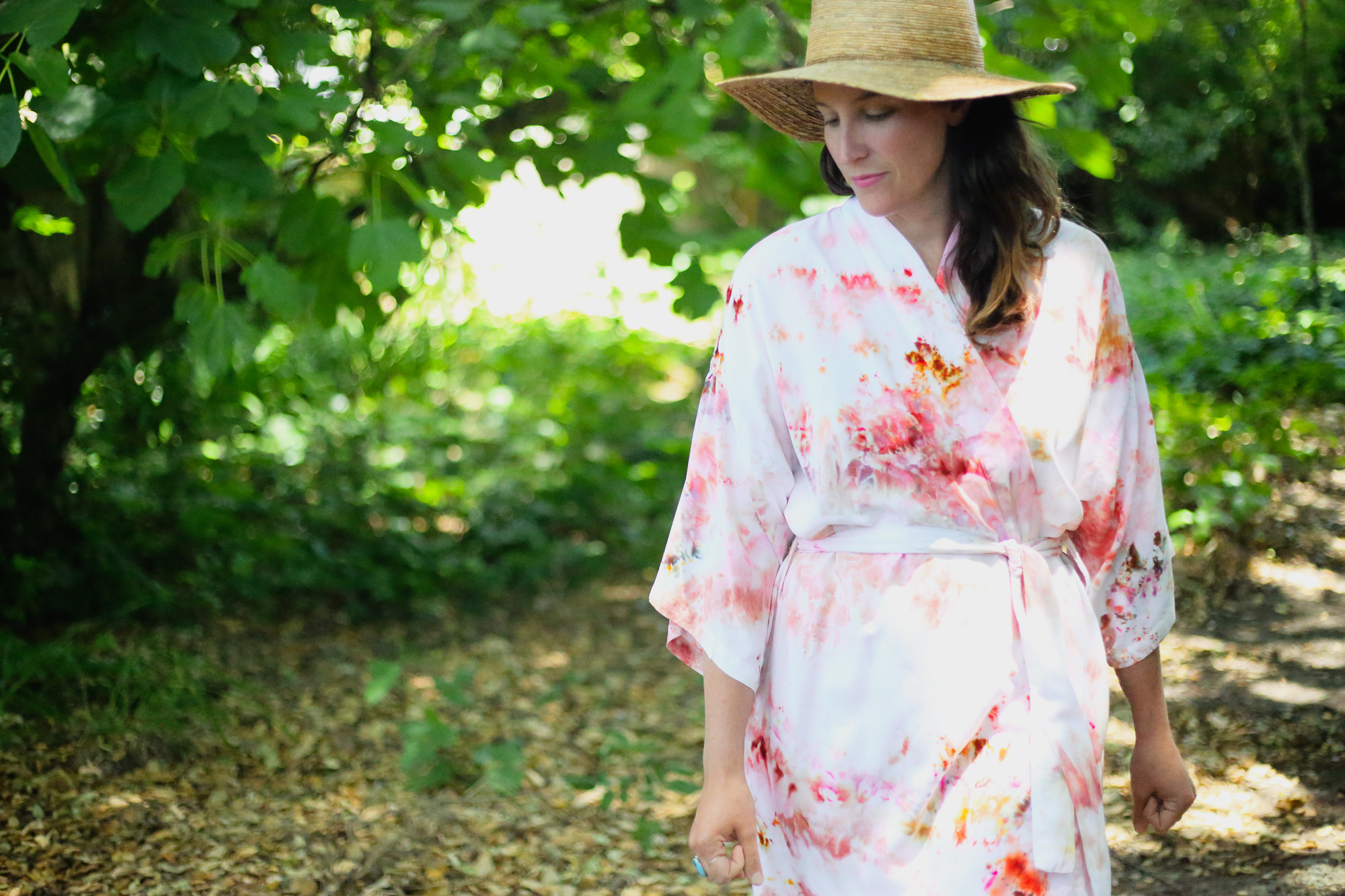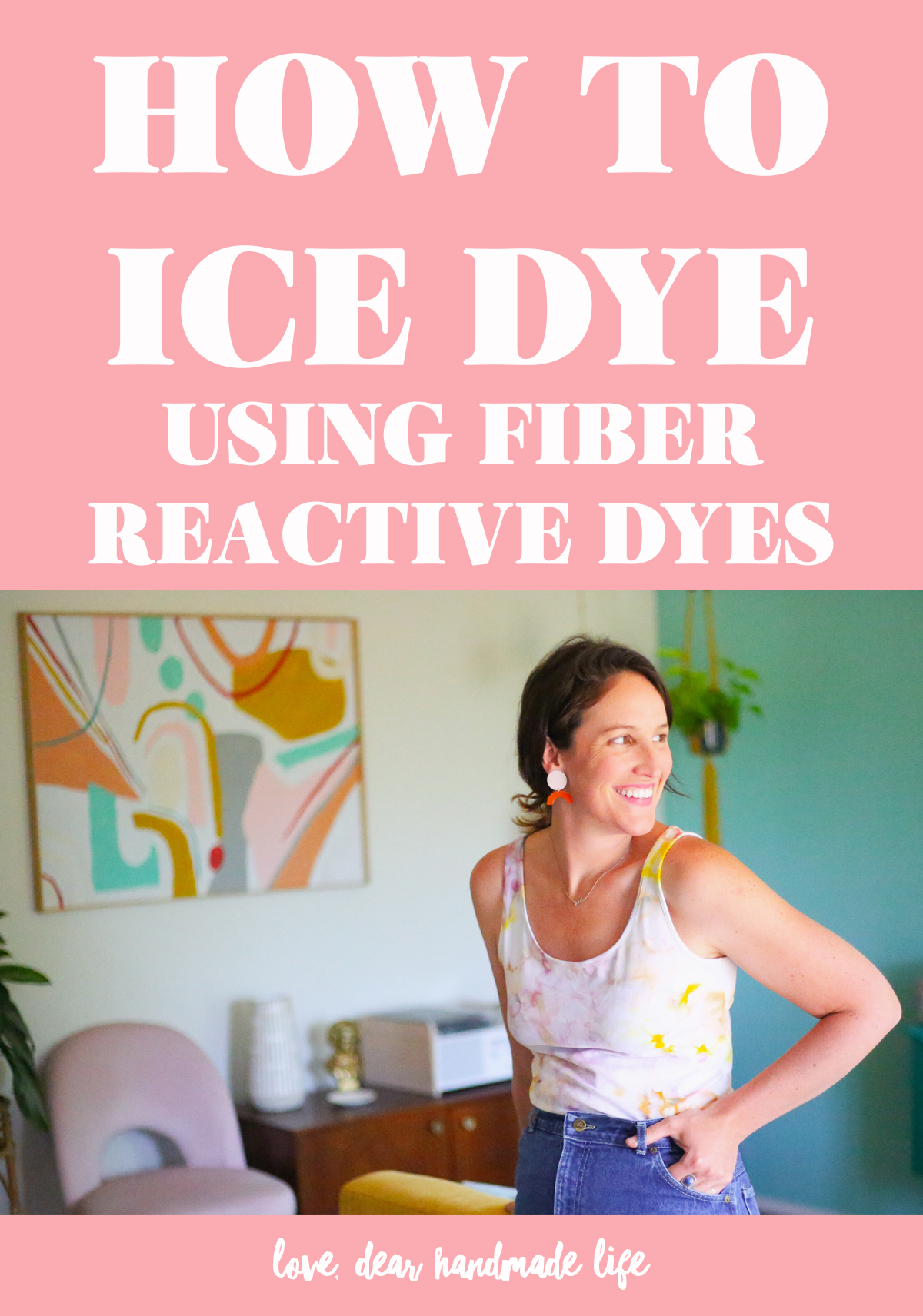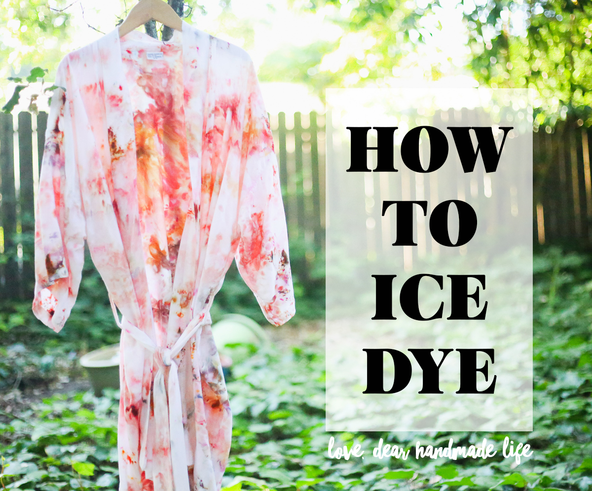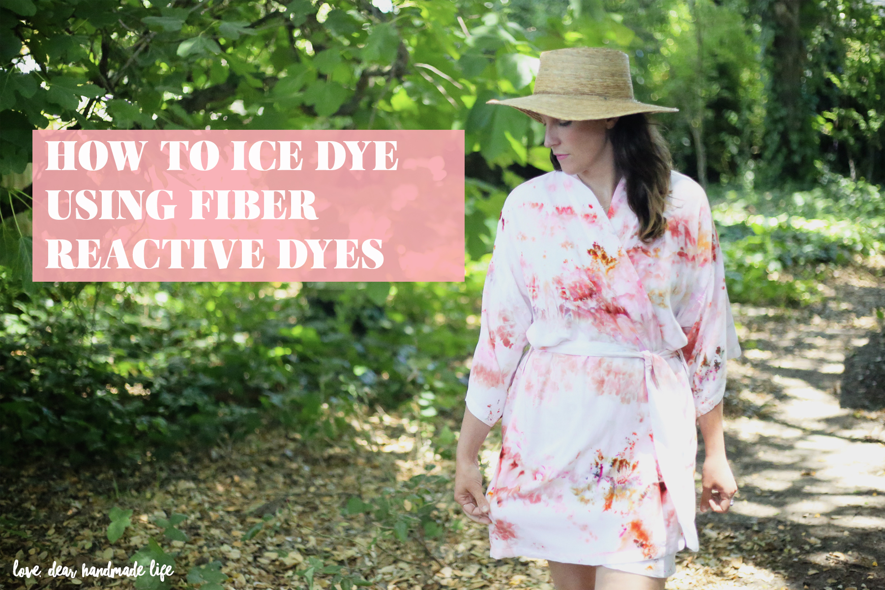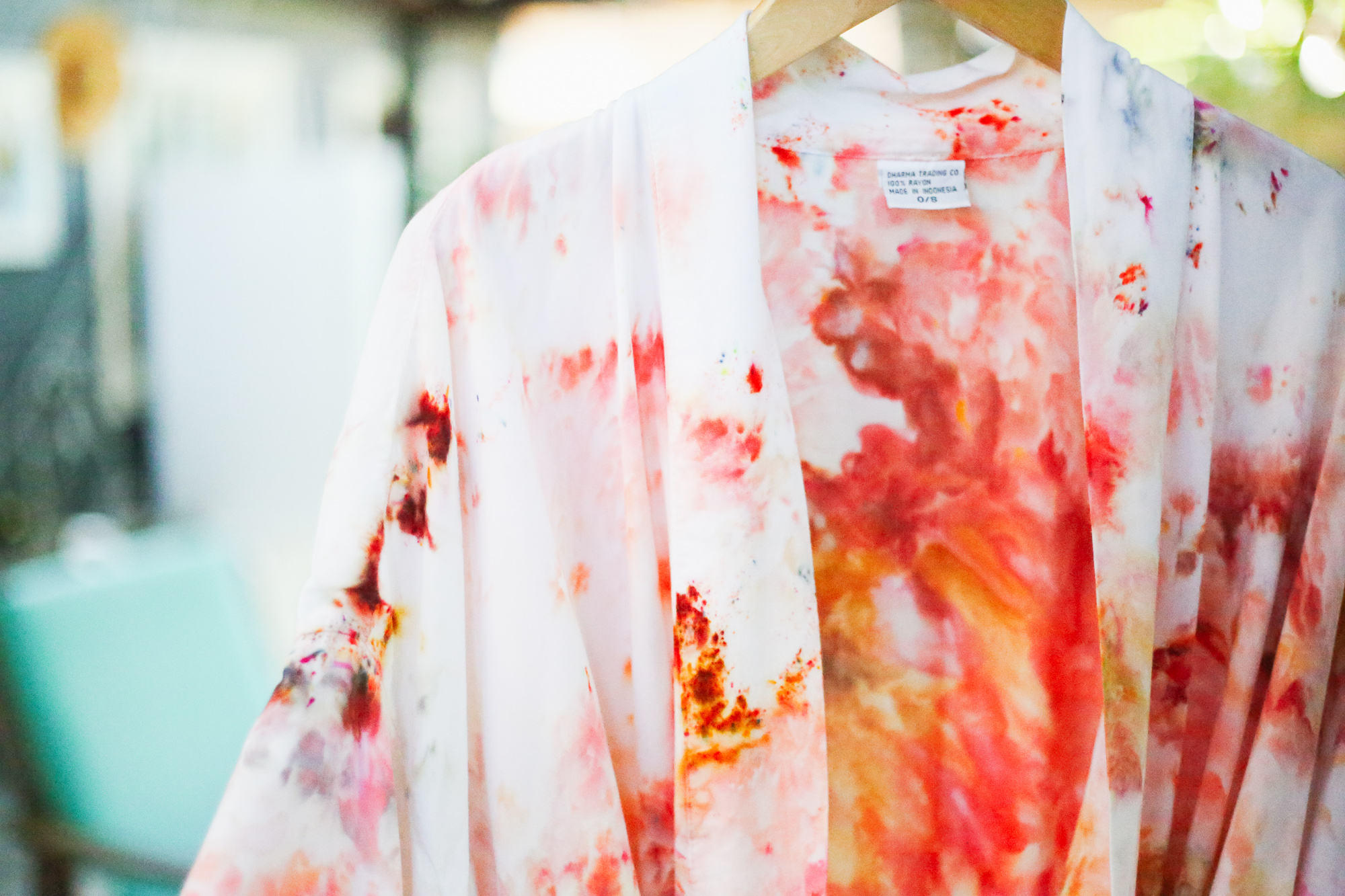 Editor’s Note: We’re excited to welcome Rebecca of Oodlebadoodle back to our blog to share her ice dyeing secrets with you. Rebecca taught an ice dyeing workshop in our Dharma Trading Co. dyeing annex classroom at our Craftcation: Business & Makers Conference last year and her students were smitten! I wasn’t able to take Rebecca’s workshop at Craftcation but she generously offered to teach Lindsey and I how to do it at Lindsey’s house recently. I loved this dyeing technique so much that we’ve actually already had a second session to dye more things! Not only does Dharma Trading Co. have all the Fiber Reactive Procion Dyes and supplies you’ll need, they have a HUGE selection of textiles and fabrics for you to dye (the robe and long dress are both from Dharma Trading Co.).