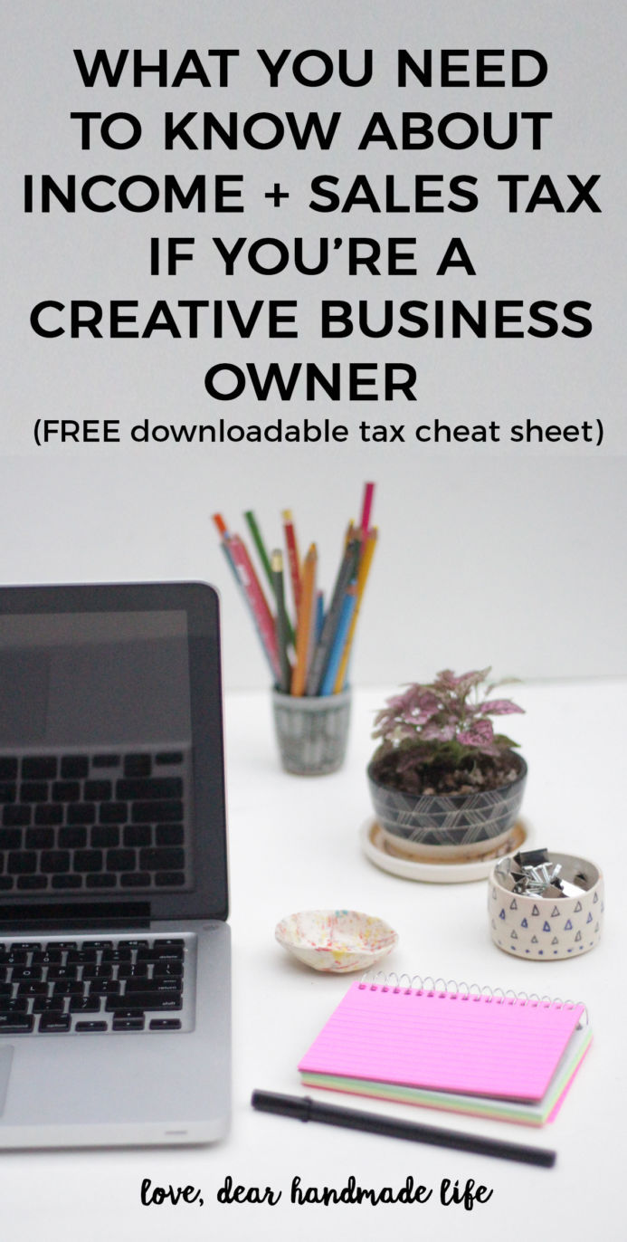 Figuring out your financial obligations can be one of the most overwhelming parts of operating your handmade business. When you’re just getting started, it can be challenging to know all about the various types of taxes and which ones might apply to your business. Let’s walk through and compare the most important taxes for your biz – income tax and sales tax. I also have a downloadable cheat sheet that compares the two side-by-side for you.