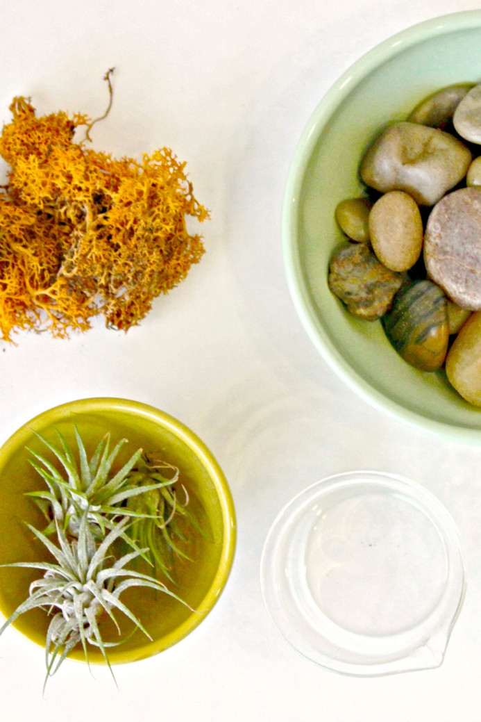 3. Finish your terrarium by placing your air plant on your fluffy cloud of moss. It helps to “dig” a little hole in your moss to help your air plant sit straight up.