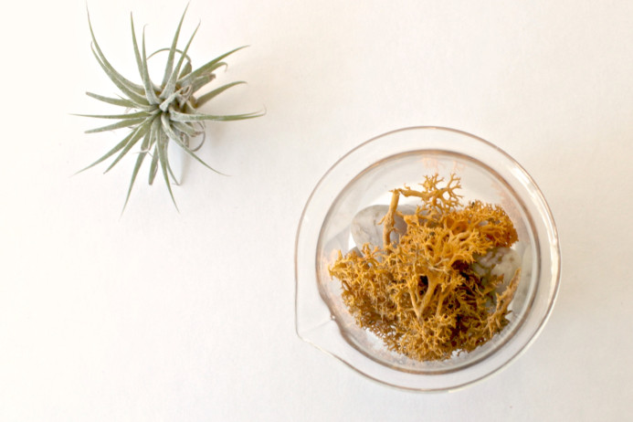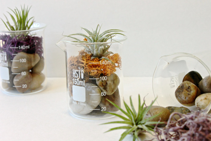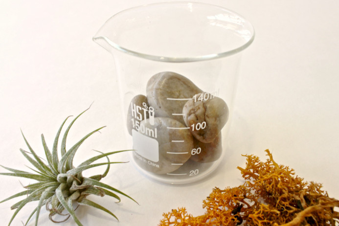 Because of the beaker, I think this terrarium would make a rad back-to-school teacher gift! However, you can replicate this project in just about any other kind of open glass vessel. I would love to hear your suggestions for a unique terrarium vessel in the comments below!