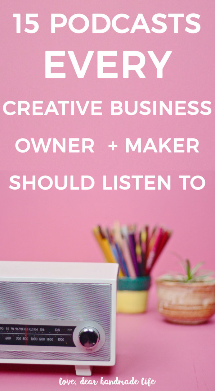 Okay, not to toot our own horns but we’re pretty in love in with our own podcast Dear Handmade Life: Conversations on Creativity, Business + Life. Each week we feature a drink (sometimes it will be a cocktail and other times it may be a favorite tea or juice) and interview an inspiring creative. Past topics include: the true costs of running a creative business, crafting a wardrobe that fits your body and style, perfection + passion projects, social media authenticity, marketing to the next generation, mastermind groups and more. You can catch up with all of our episodes here.