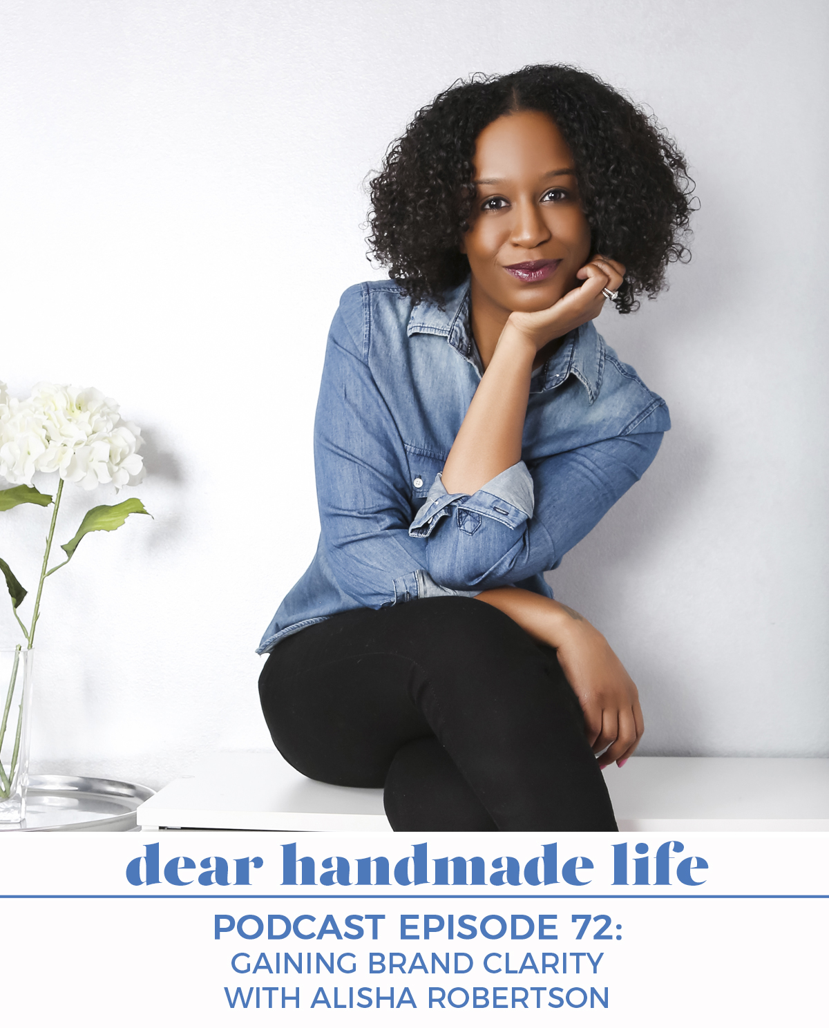 Today on the Dear Handmade Life podcast we talk with business coach, author and founder of the digital media company, Living Over Existing Alisha Robertson about finding brand clarity. We met Alisha at our Craftcation Conference in 2018 where she taught attendees about branding and content creation. In this episode we discuss how to keep the story of your brand fresh, finding your niche, creating unique experiences with your customers, how to push past fear and anxiety, preparing for big risks, discovering your values and the story of your brand and more.