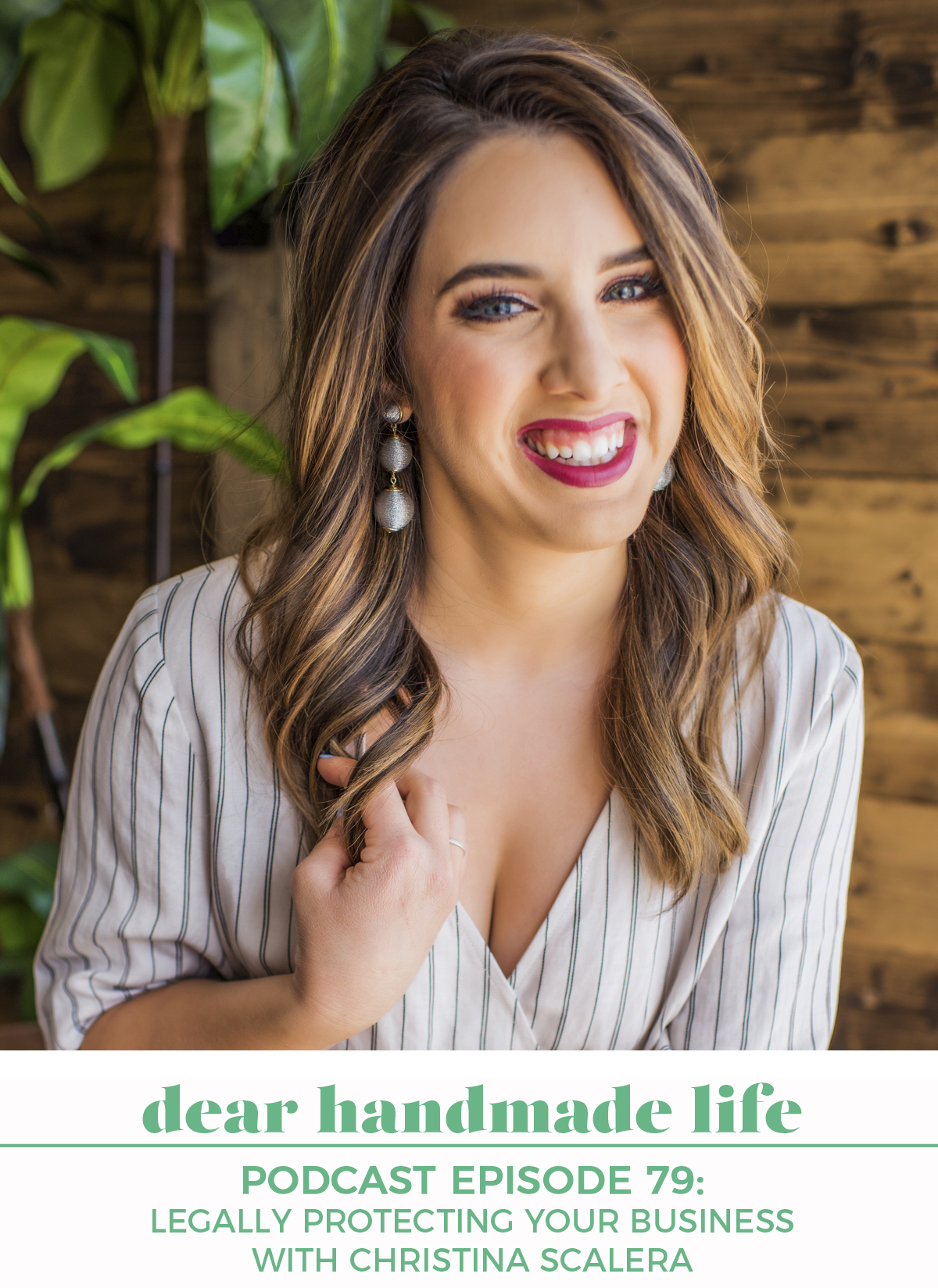 Today on the Dear Handmade Life podcast we’re talking to Christina Scalera, the attorney and founder behind The Contract Shop, a contract template store for creative entrepreneurs, wedding professionals, and coaches about legally protecting your business. I chat with Christina about how getting your legal ducks in a row can increase productivity, when you need a contract, the two basic types of insurance every business (no matter how small) needs, the GDPR, the most important legal and financial things you need to have in place when you start your business and more.