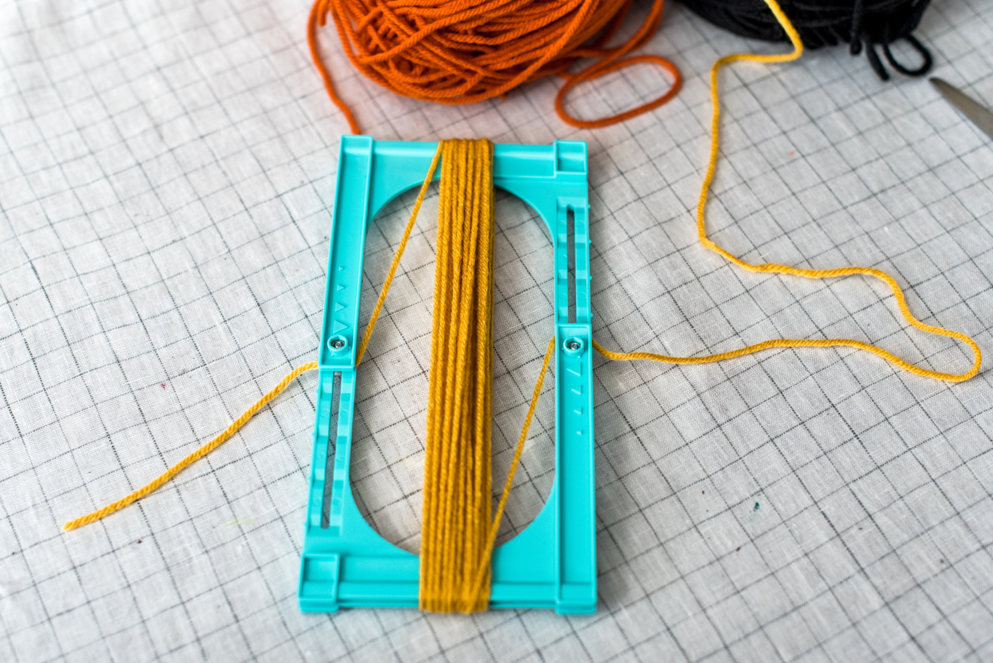 Once it’s wrapped to your liking, secure the other end of the yarn under the lip on the other side of the maker and snip the yarn.