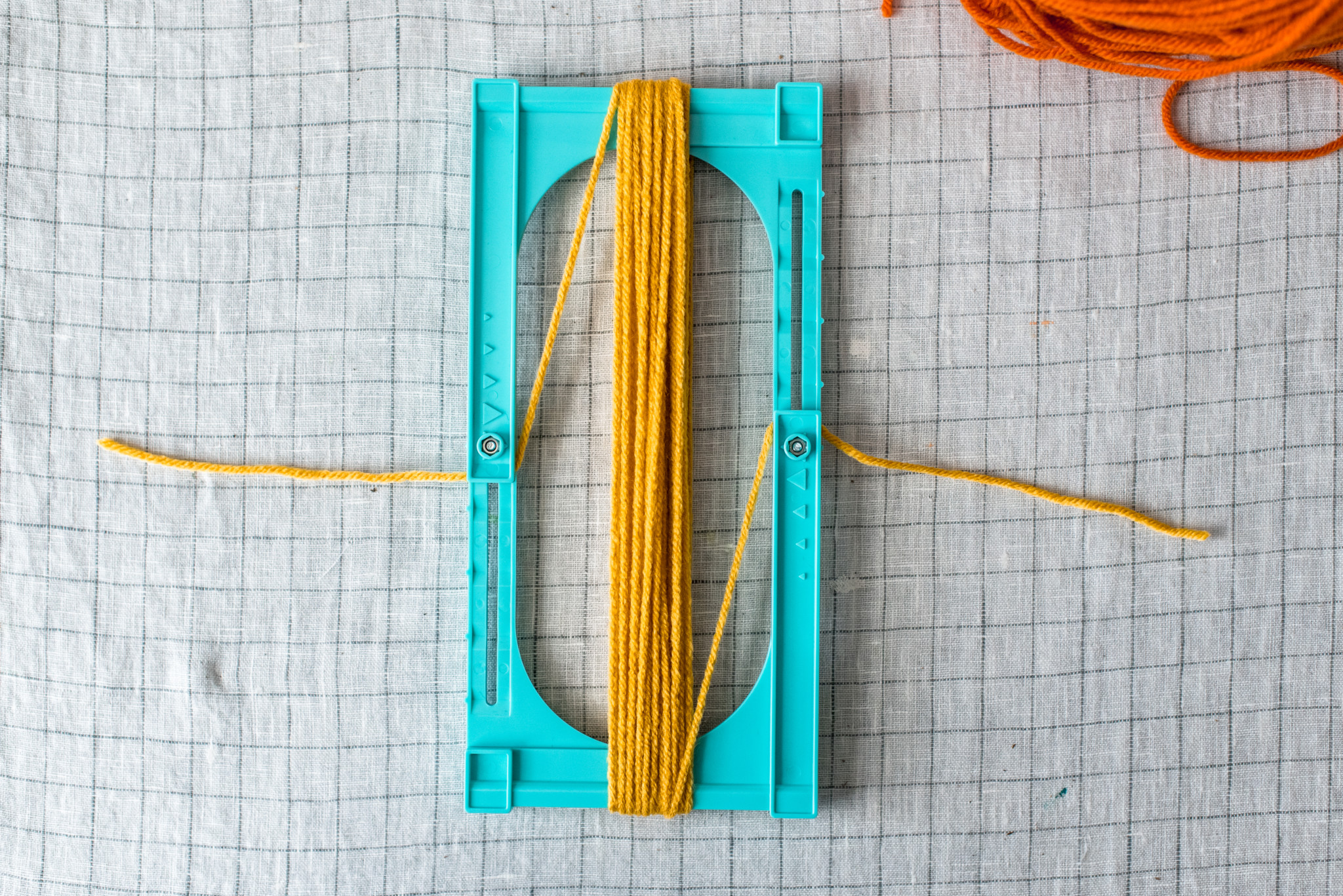 Secure the end of your yarn under one of the lips and start wrapping your yarn around the middle of the maker. Keep in mind that the more yarn you wrap around the thicker your tassel will ultimately be.