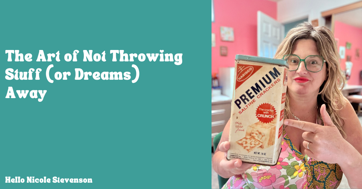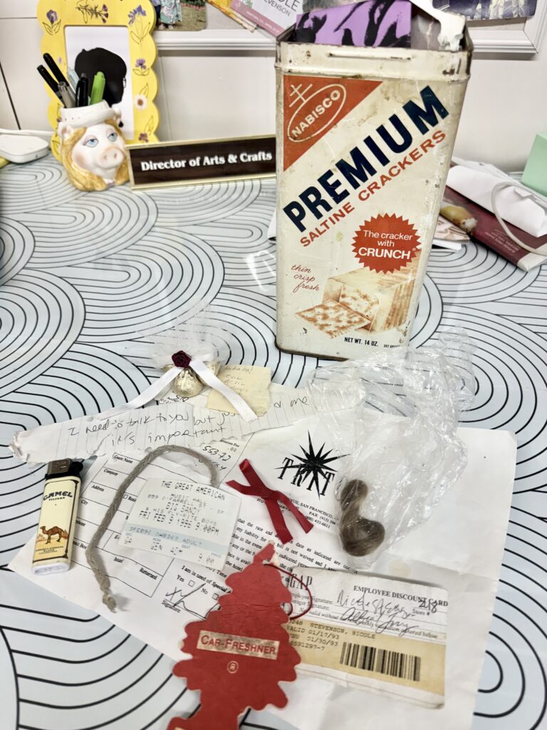 So it’s not shocking that I still have a 1940s saltines tin I bought at a thrift store, filled with bits of paper and objects (like that plastic fork) that probably only make sense to me. Friendship bracelets. Concert ticket stubs. DIY punk flyers from when Sublime and No Doubt played in suburban backyards and we felt like we were discovering fire. Literal trash—but with emotional value.