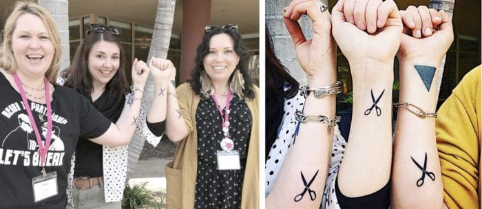 Jenice and her group of friends she met at Craftcation with their matching tattoos